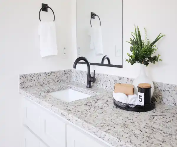 We also offer countertops in stunning, moisture-resistant materials like quartz and granite. Need extra storage? Our custom cabinetry and shelving solutions maximize space without compromising design.